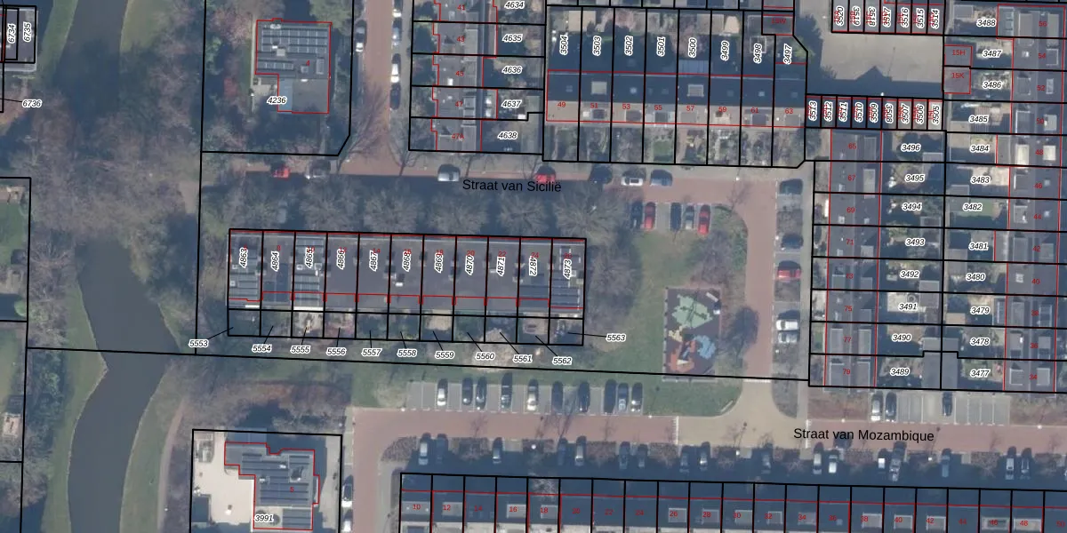 Gebruik de zoekbalk of klik op een perceel om informatie over het perceel te bekijken.