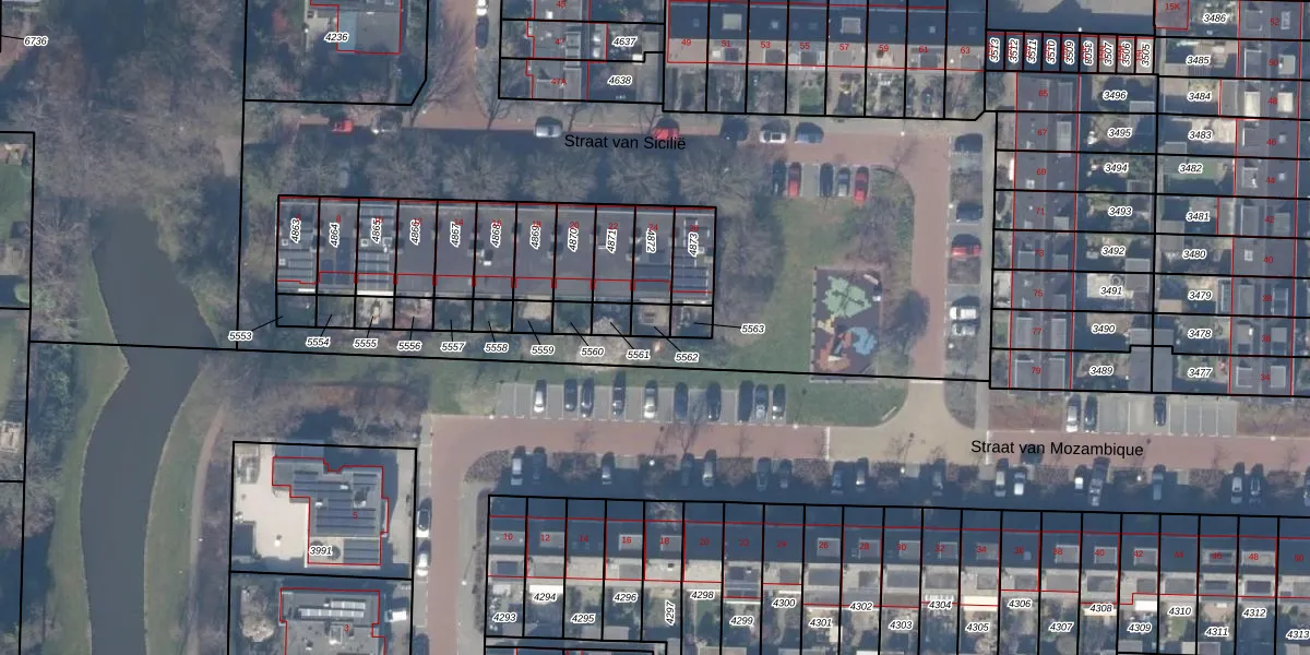 Gebruik de zoekbalk of klik op een perceel om informatie over het perceel te bekijken.