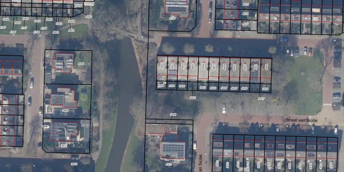 Gebruik de zoekbalk of klik op een perceel om informatie over het perceel te bekijken.