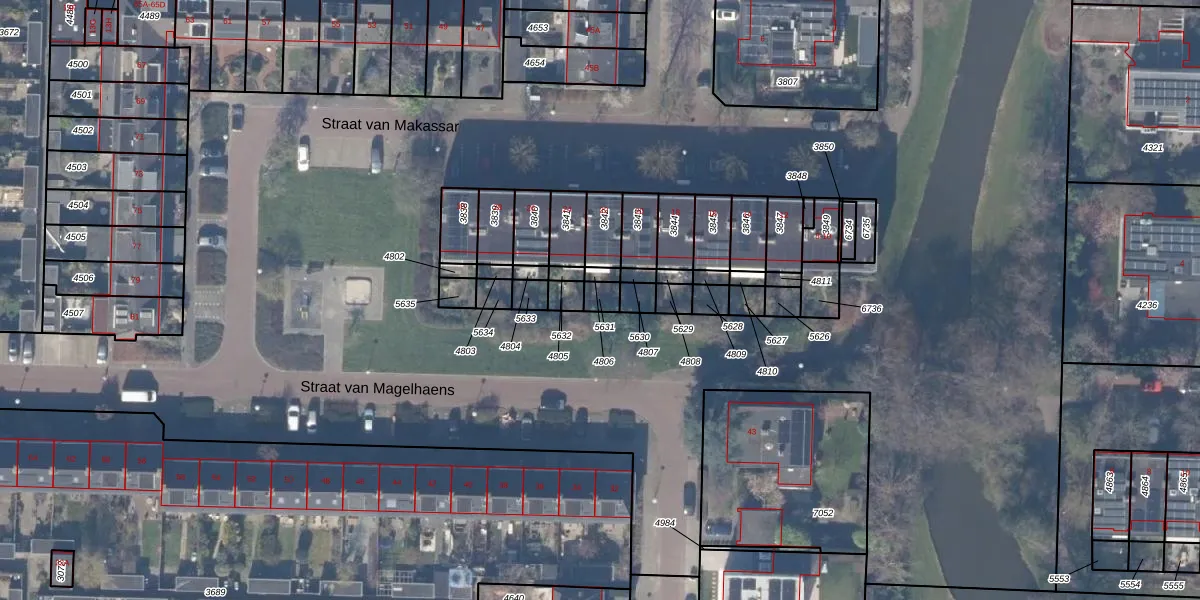 Gebruik de zoekbalk of klik op een perceel om informatie over het perceel te bekijken.