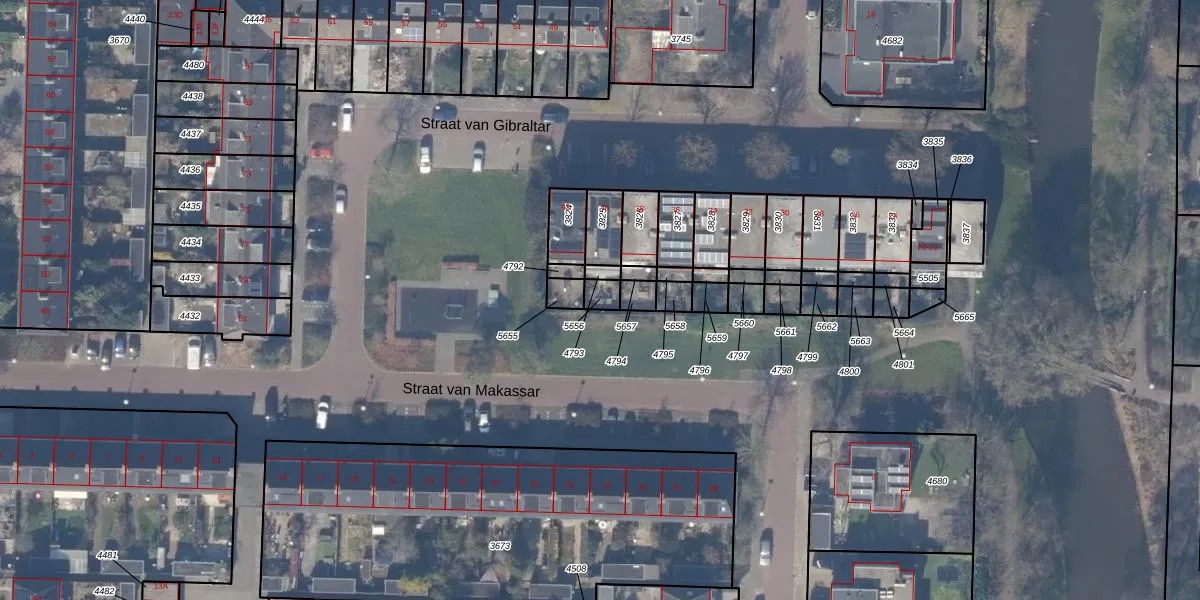 Gebruik de zoekbalk of klik op een perceel om informatie over het perceel te bekijken.