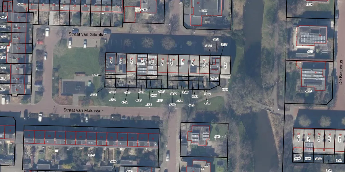 Gebruik de zoekbalk of klik op een perceel om informatie over het perceel te bekijken.