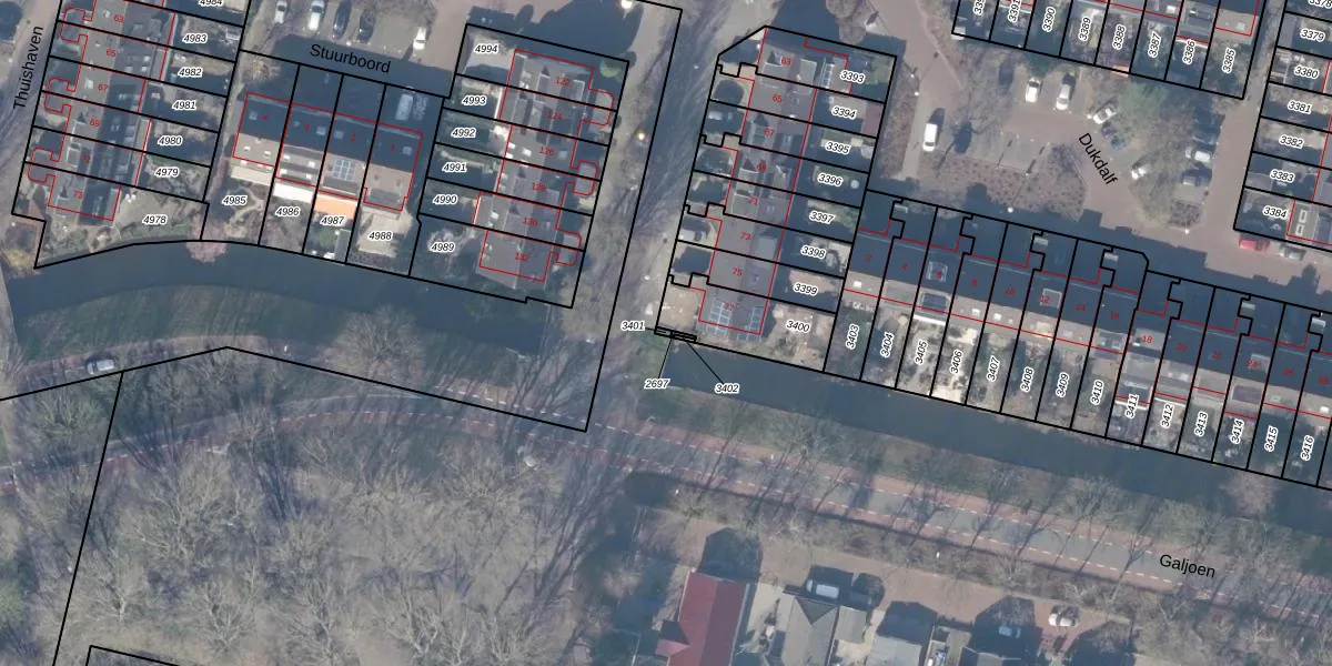 Gebruik de zoekbalk of klik op een perceel om informatie over het perceel te bekijken.