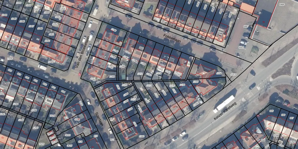 Gebruik de zoekbalk of klik op een perceel om informatie over het perceel te bekijken.