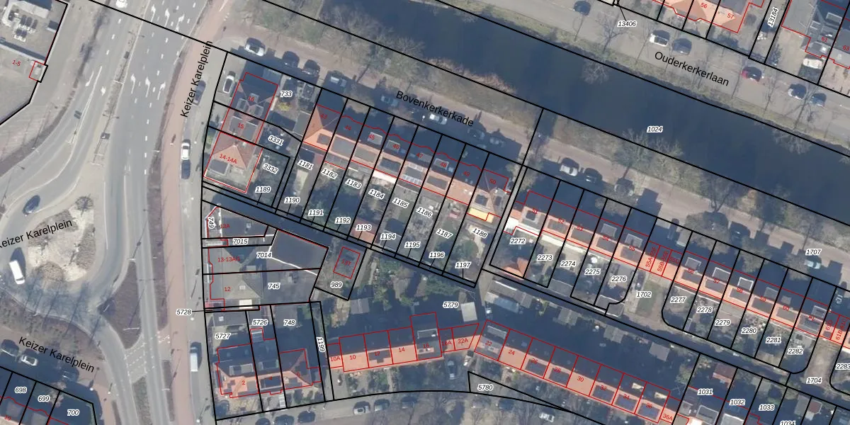 Gebruik de zoekbalk of klik op een perceel om informatie over het perceel te bekijken.