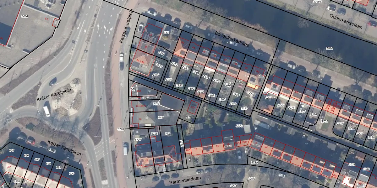 Gebruik de zoekbalk of klik op een perceel om informatie over het perceel te bekijken.