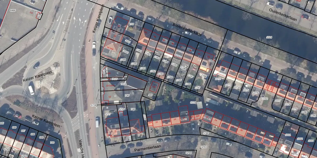 Gebruik de zoekbalk of klik op een perceel om informatie over het perceel te bekijken.