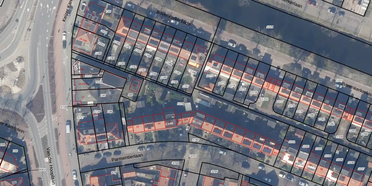 Gebruik de zoekbalk of klik op een perceel om informatie over het perceel te bekijken.