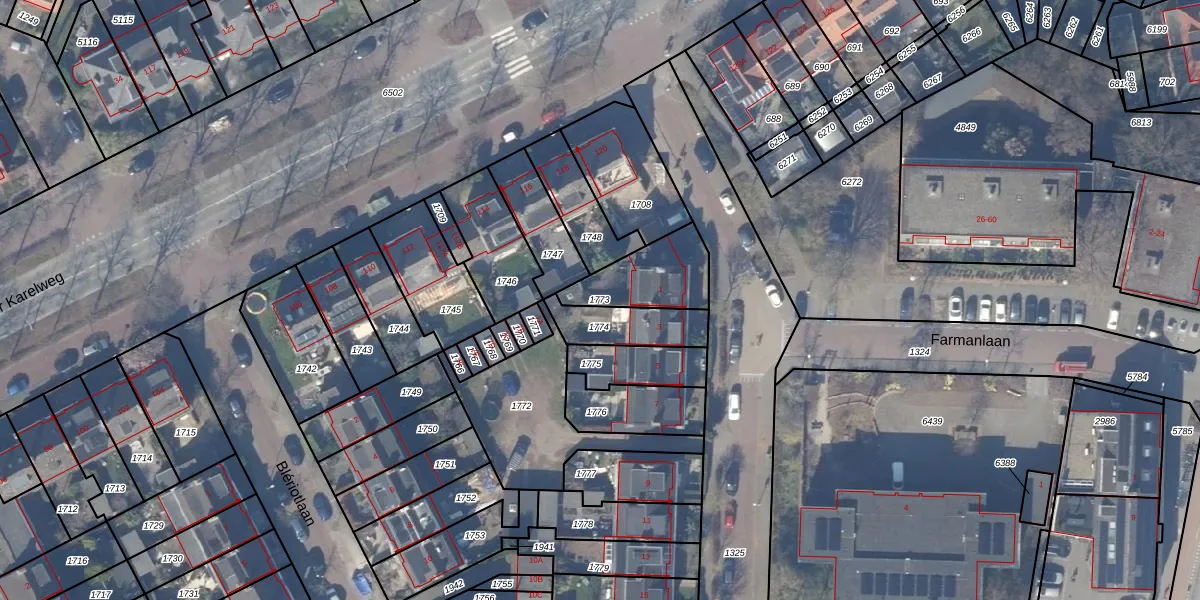 Gebruik de zoekbalk of klik op een perceel om informatie over het perceel te bekijken.