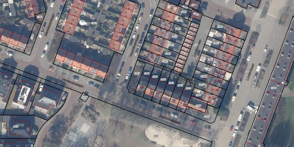 Gebruik de zoekbalk of klik op een perceel om informatie over het perceel te bekijken.