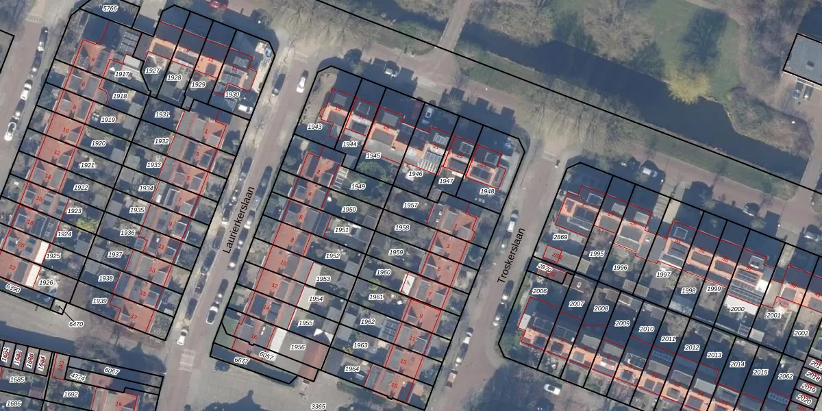 Gebruik de zoekbalk of klik op een perceel om informatie over het perceel te bekijken.