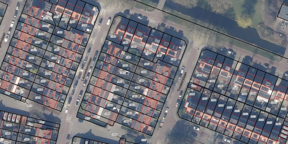 Gebruik de zoekbalk of klik op een perceel om informatie over het perceel te bekijken.