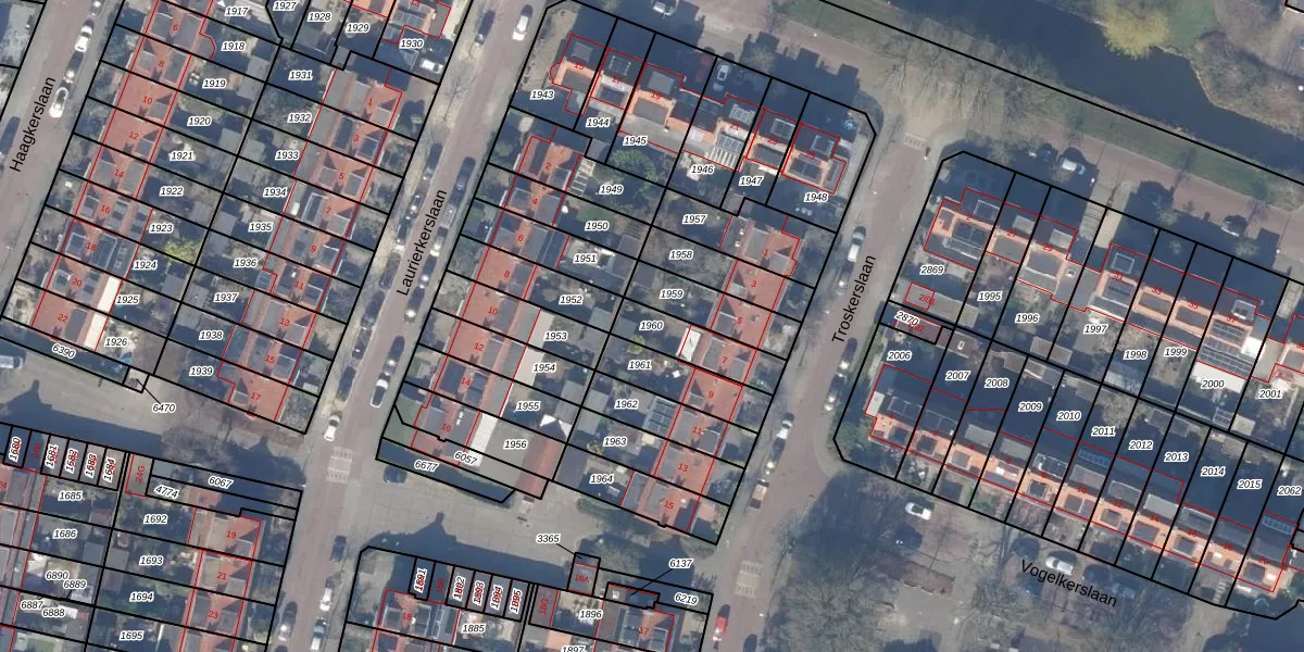 Gebruik de zoekbalk of klik op een perceel om informatie over het perceel te bekijken.