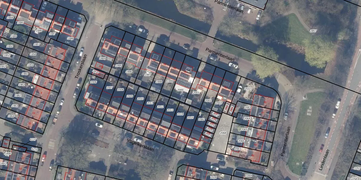 Gebruik de zoekbalk of klik op een perceel om informatie over het perceel te bekijken.