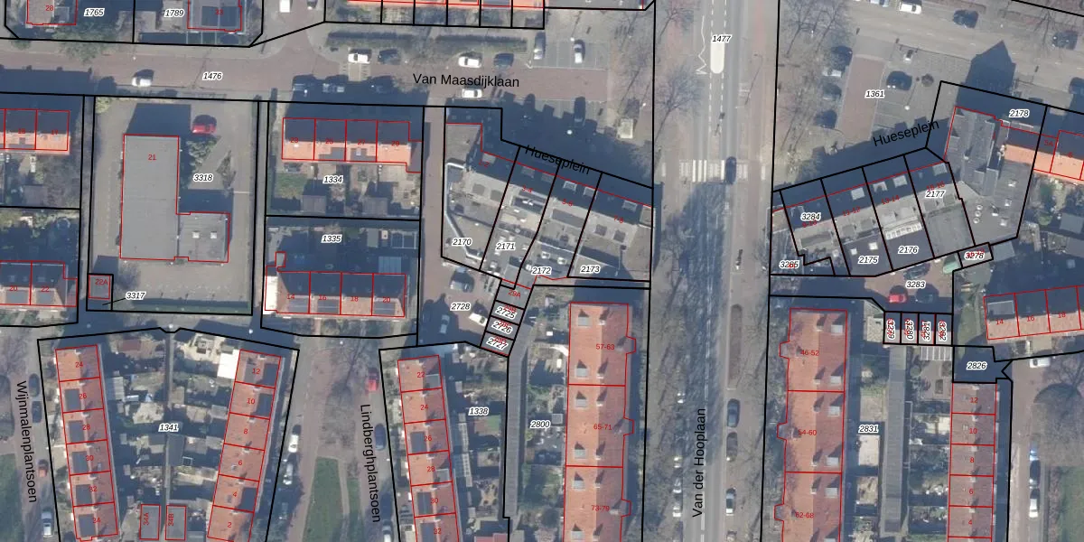 Gebruik de zoekbalk of klik op een perceel om informatie over het perceel te bekijken.