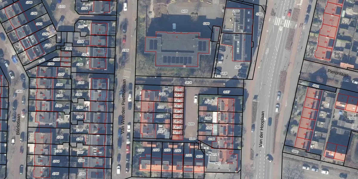 Gebruik de zoekbalk of klik op een perceel om informatie over het perceel te bekijken.