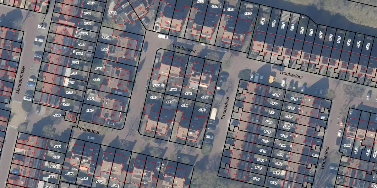 Gebruik de zoekbalk of klik op een perceel om informatie over het perceel te bekijken.