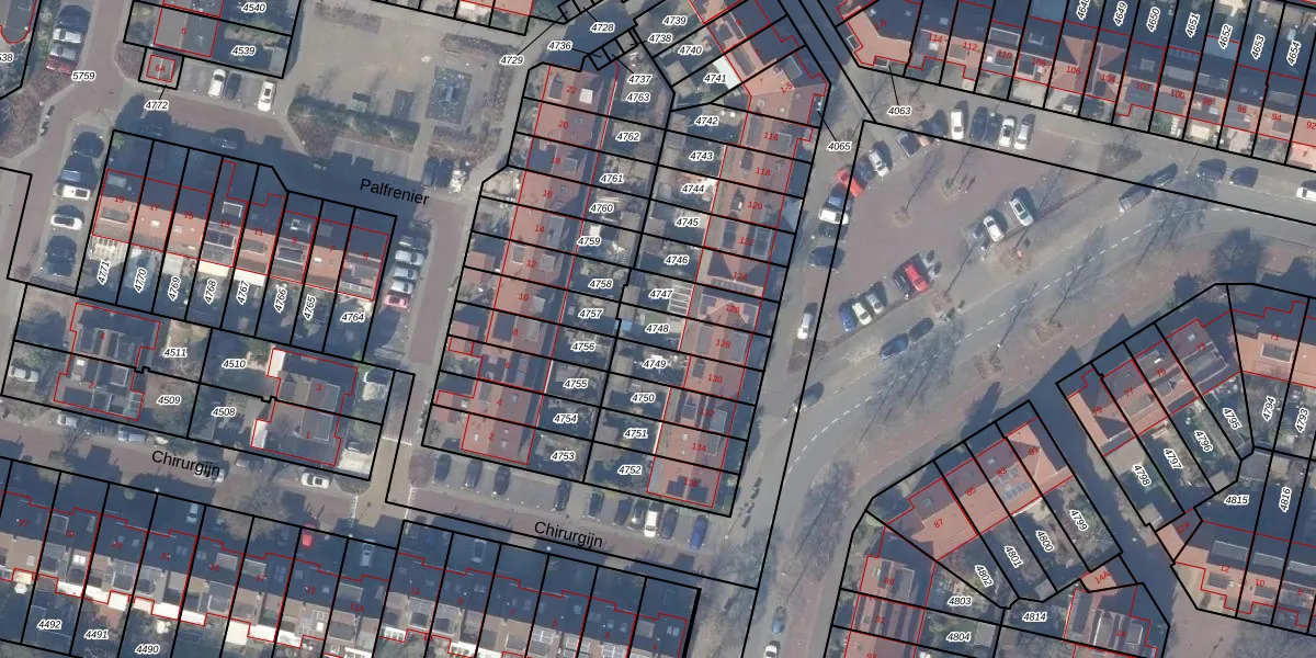 Gebruik de zoekbalk of klik op een perceel om informatie over het perceel te bekijken.