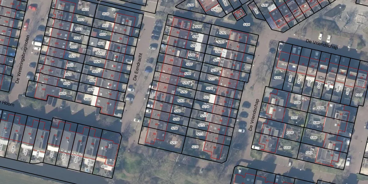Gebruik de zoekbalk of klik op een perceel om informatie over het perceel te bekijken.