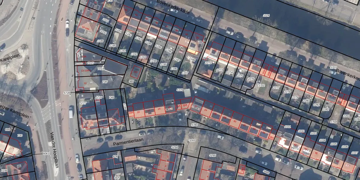Gebruik de zoekbalk of klik op een perceel om informatie over het perceel te bekijken.
