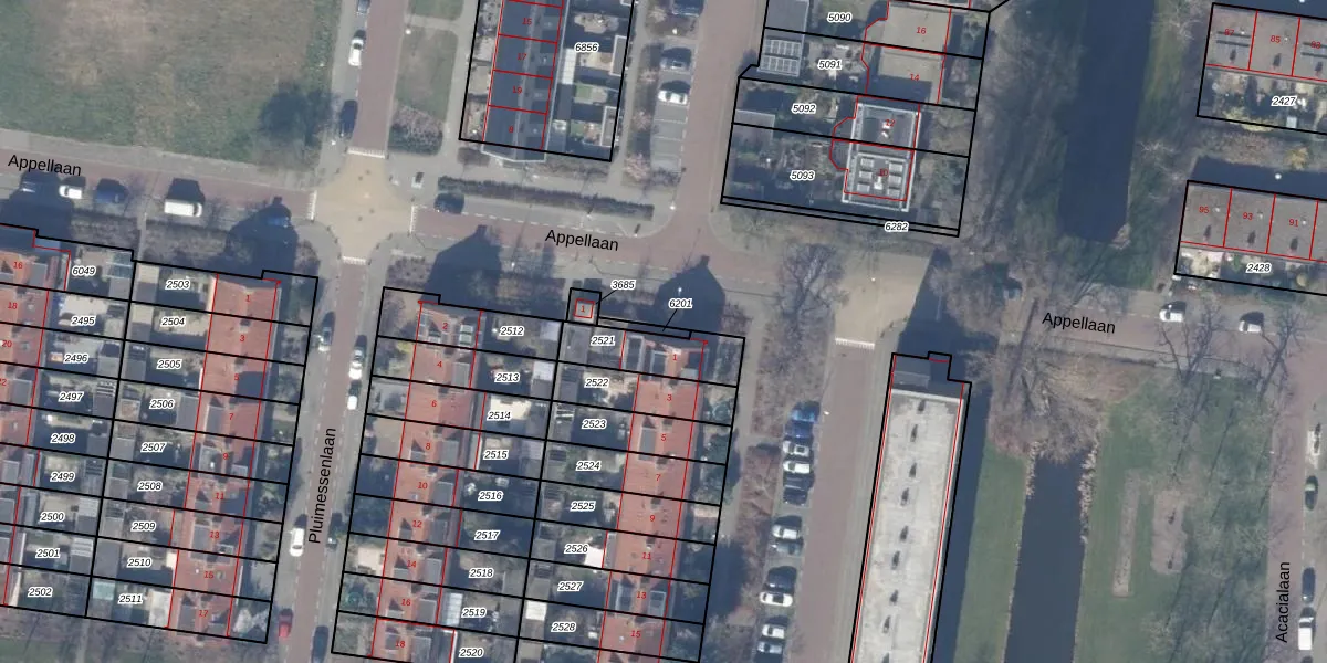 Gebruik de zoekbalk of klik op een perceel om informatie over het perceel te bekijken.