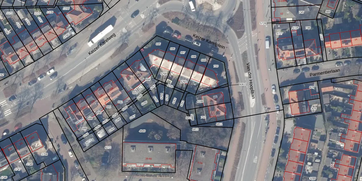 Gebruik de zoekbalk of klik op een perceel om informatie over het perceel te bekijken.