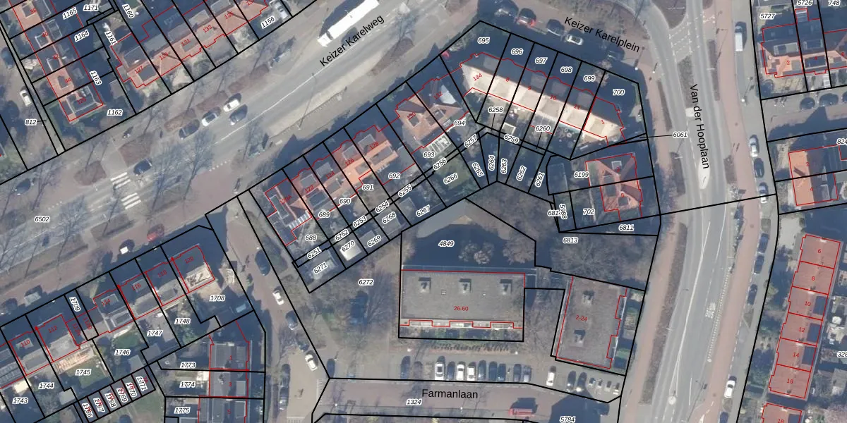 Gebruik de zoekbalk of klik op een perceel om informatie over het perceel te bekijken.
