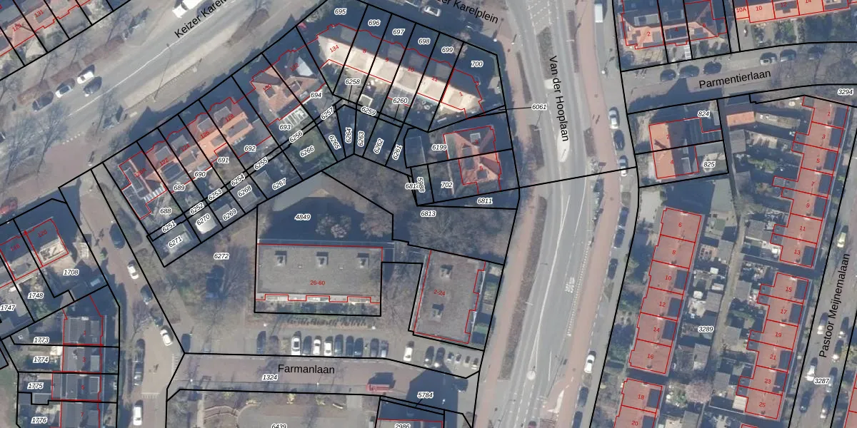 Gebruik de zoekbalk of klik op een perceel om informatie over het perceel te bekijken.