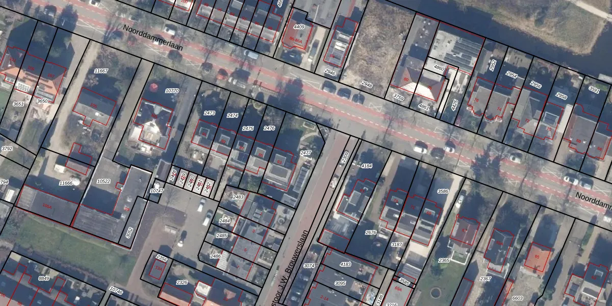 Gebruik de zoekbalk of klik op een perceel om informatie over het perceel te bekijken.