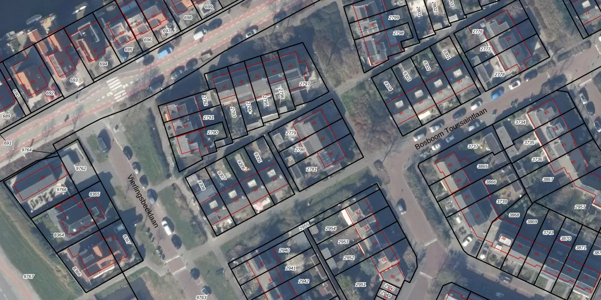Gebruik de zoekbalk of klik op een perceel om informatie over het perceel te bekijken.