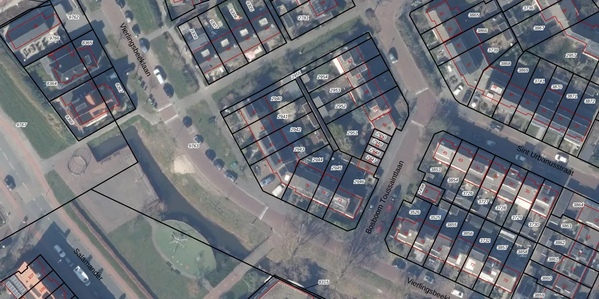 Gebruik de zoekbalk of klik op een perceel om informatie over het perceel te bekijken.