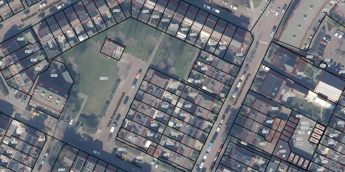 Gebruik de zoekbalk of klik op een perceel om informatie over het perceel te bekijken.