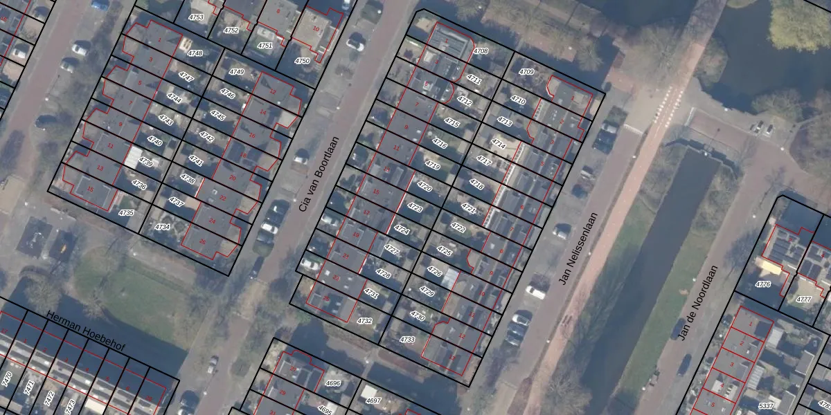 Gebruik de zoekbalk of klik op een perceel om informatie over het perceel te bekijken.