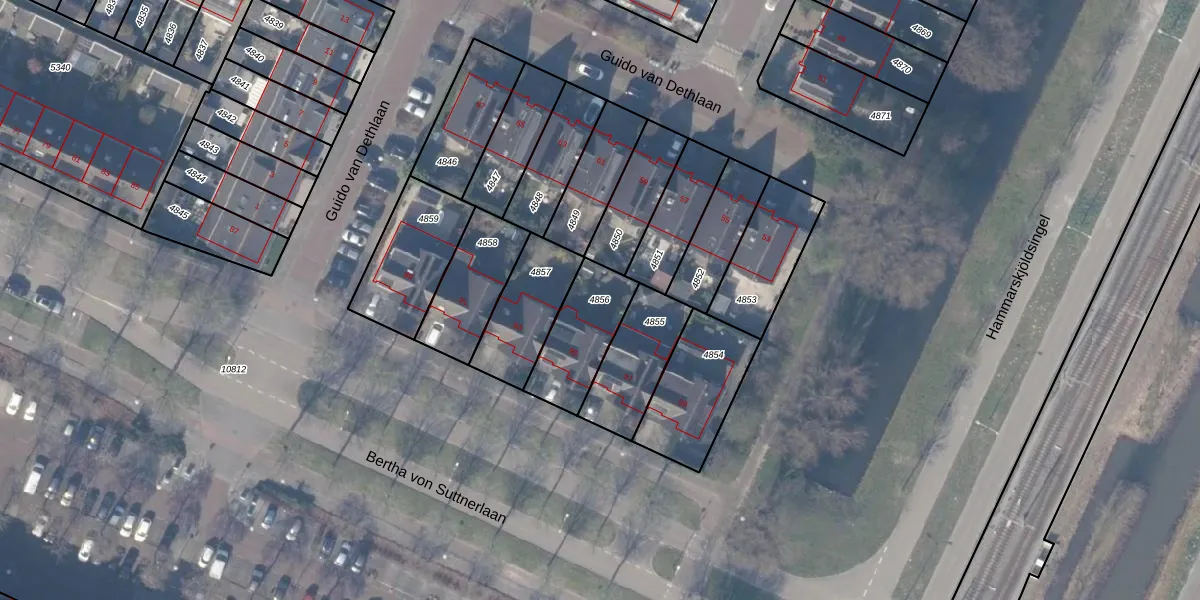 Gebruik de zoekbalk of klik op een perceel om informatie over het perceel te bekijken.