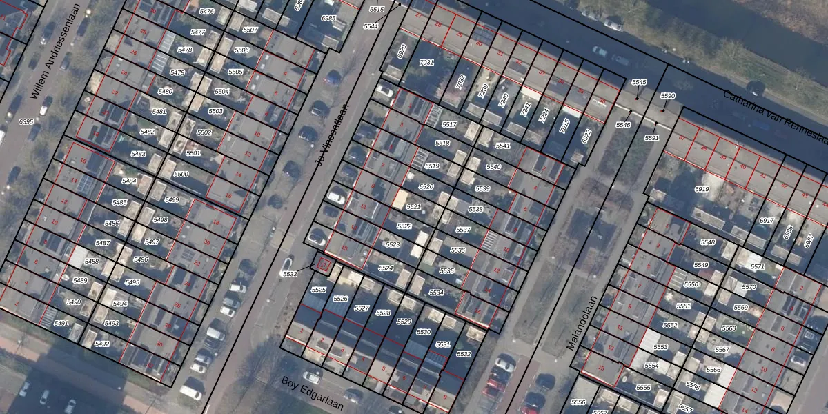 Gebruik de zoekbalk of klik op een perceel om informatie over het perceel te bekijken.