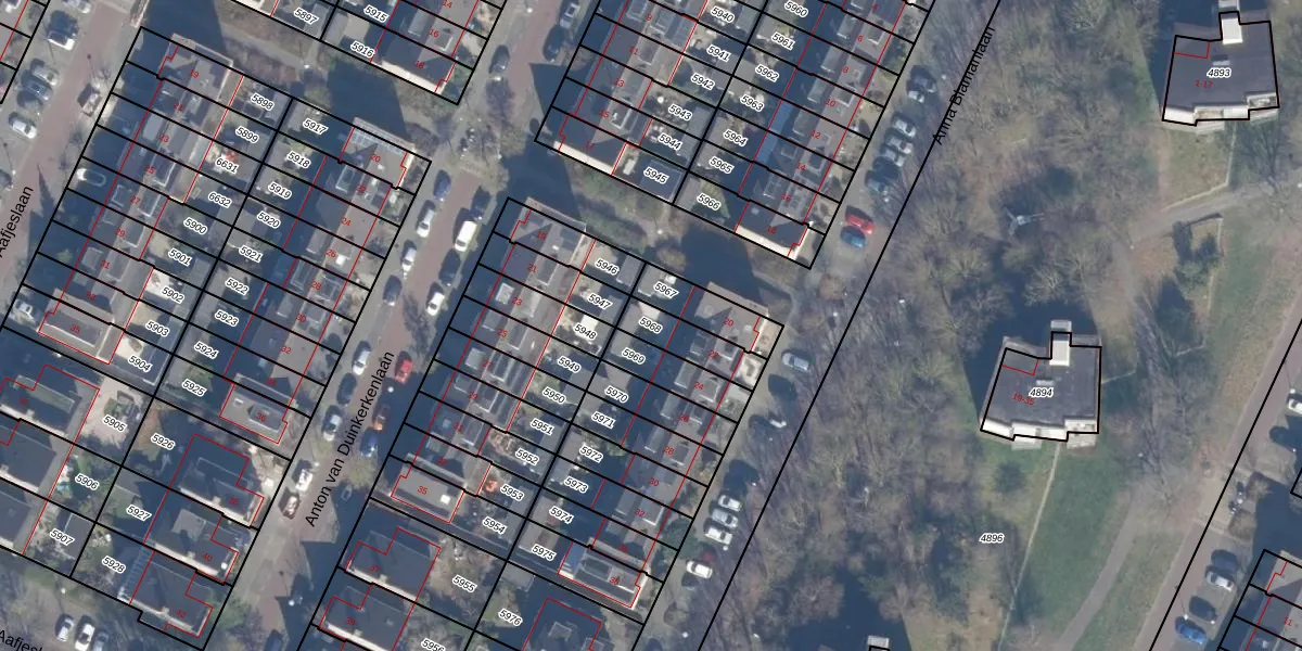 Gebruik de zoekbalk of klik op een perceel om informatie over het perceel te bekijken.