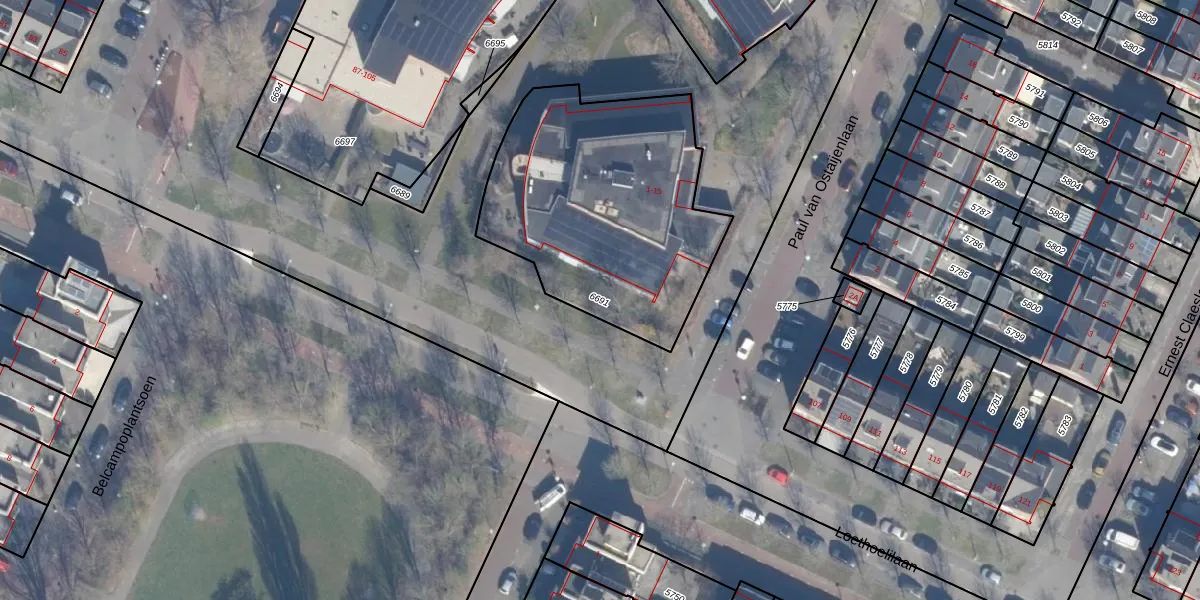 Gebruik de zoekbalk of klik op een perceel om informatie over het perceel te bekijken.