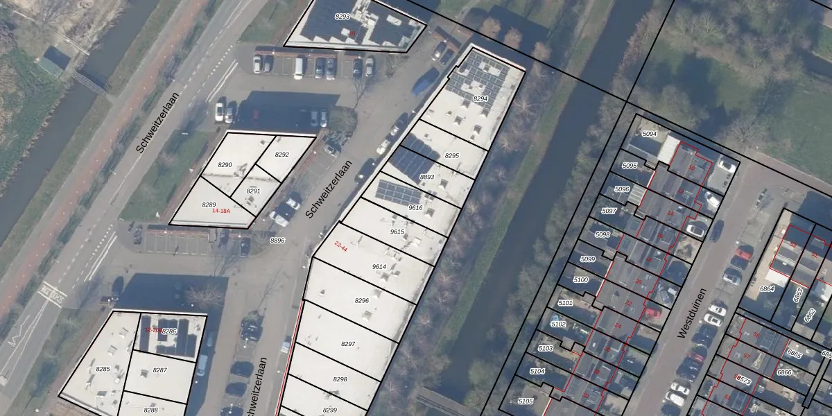 Gebruik de zoekbalk of klik op een perceel om informatie over het perceel te bekijken.