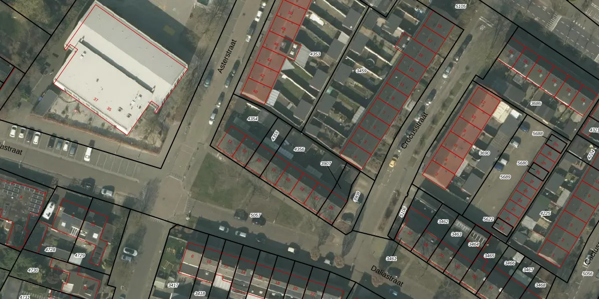 Gebruik de zoekbalk of klik op een perceel om informatie over het perceel te bekijken.