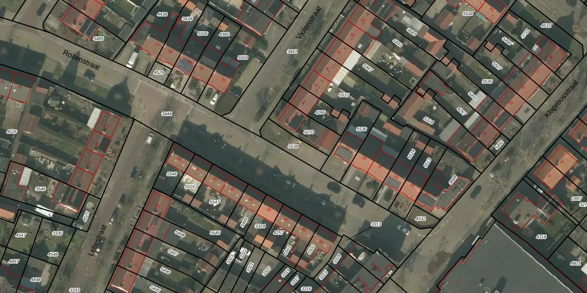 Gebruik de zoekbalk of klik op een perceel om informatie over het perceel te bekijken.