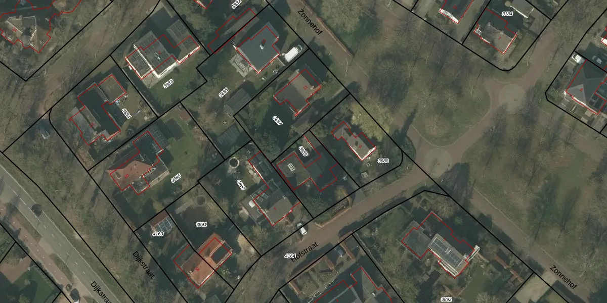Gebruik de zoekbalk of klik op een perceel om informatie over het perceel te bekijken.