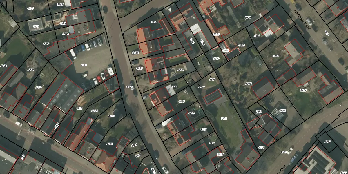 Gebruik de zoekbalk of klik op een perceel om informatie over het perceel te bekijken.