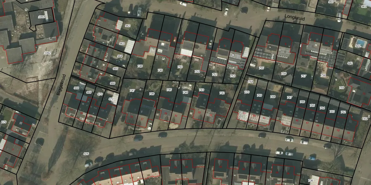 Gebruik de zoekbalk of klik op een perceel om informatie over het perceel te bekijken.