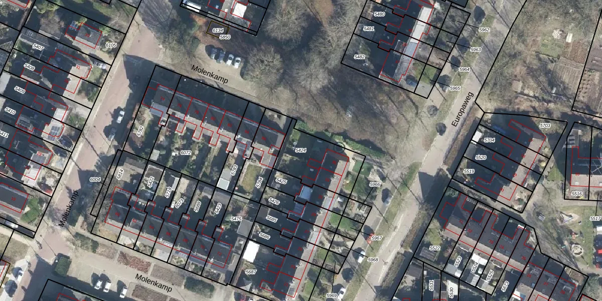 Gebruik de zoekbalk of klik op een perceel om informatie over het perceel te bekijken.