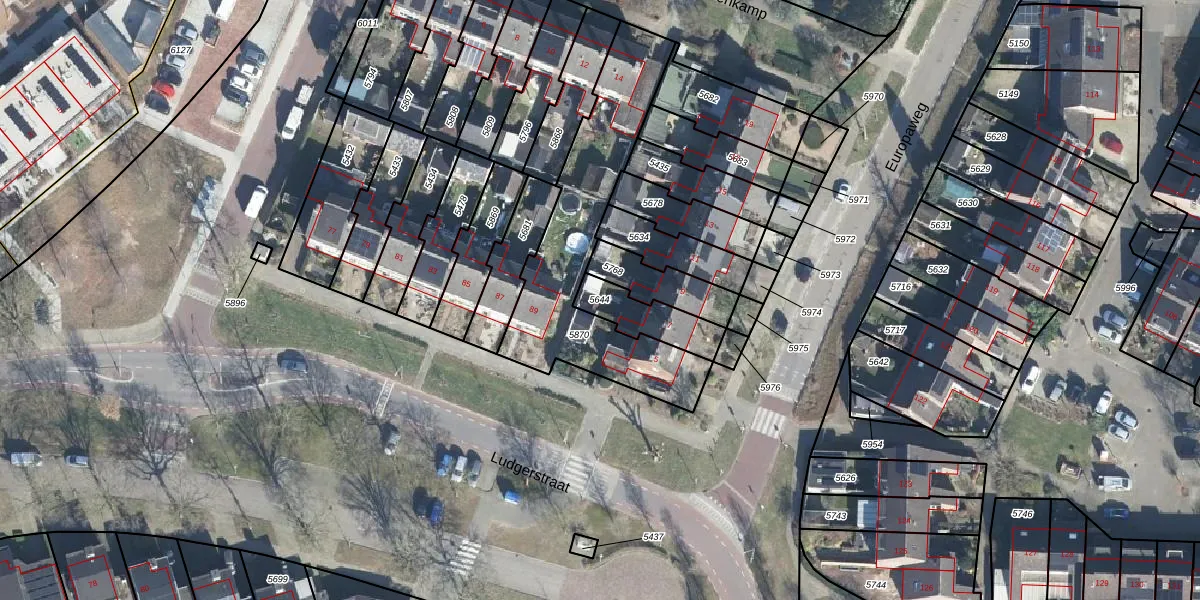 Gebruik de zoekbalk of klik op een perceel om informatie over het perceel te bekijken.