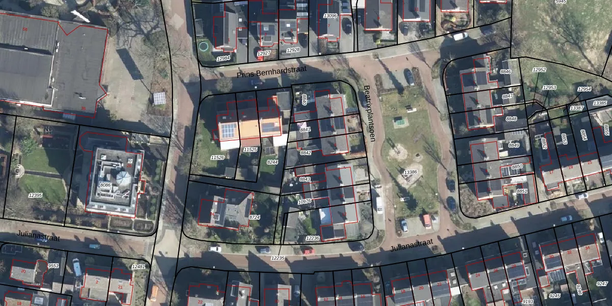 Gebruik de zoekbalk of klik op een perceel om informatie over het perceel te bekijken.
