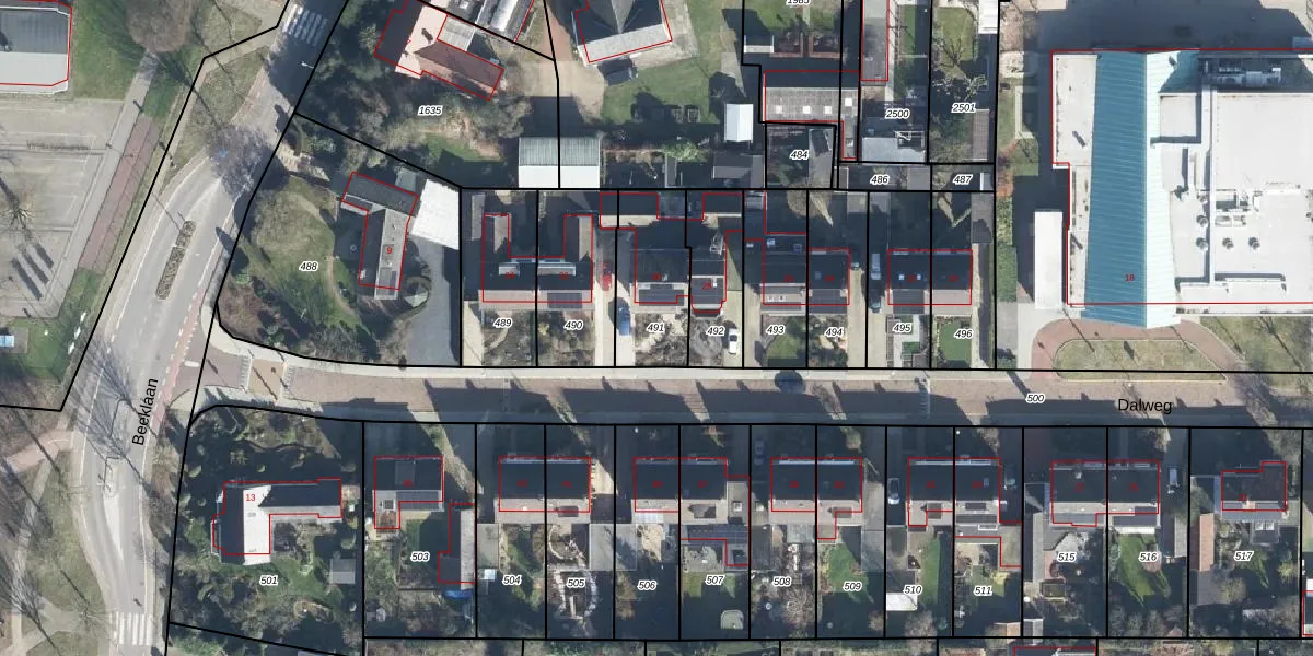 Gebruik de zoekbalk of klik op een perceel om informatie over het perceel te bekijken.