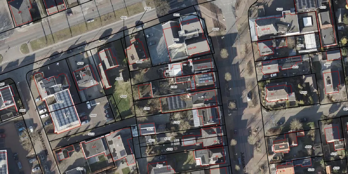 Gebruik de zoekbalk of klik op een perceel om informatie over het perceel te bekijken.