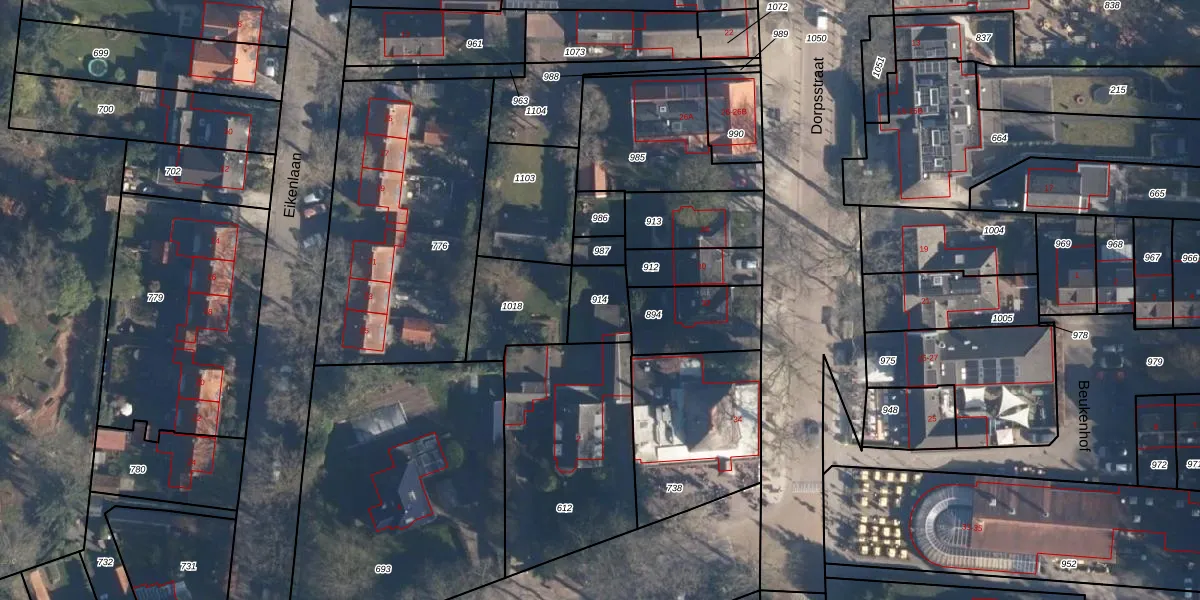 Gebruik de zoekbalk of klik op een perceel om informatie over het perceel te bekijken.