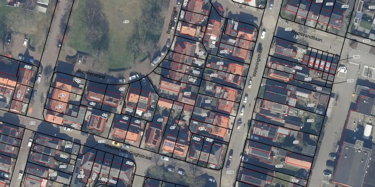 Gebruik de zoekbalk of klik op een perceel om informatie over het perceel te bekijken.
